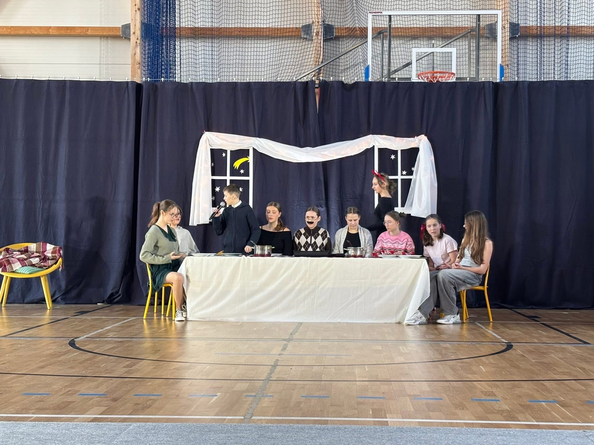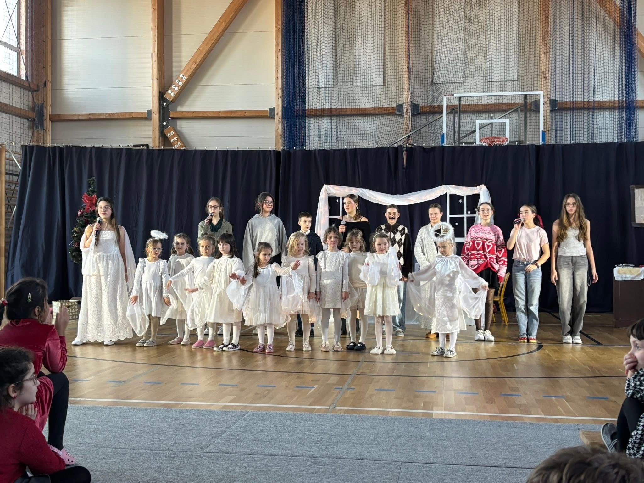 18 grudnia wieczorem nasza szkoła wypełniła się świąteczną atmosferą, radością i magią. Odbyło się wyjątkowe spotkanie bożonarodzeniowe, podczas którego uczniowie zaprezentowali przedstawienie świąteczne pt. „Świąteczne zamieszanie".
